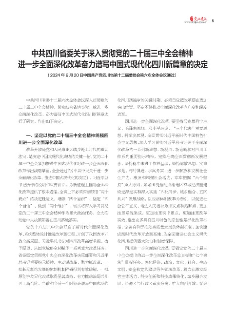(2024 年 9 月 20 日中国共产党四川省第十二届委员会第六次全体会议通过)