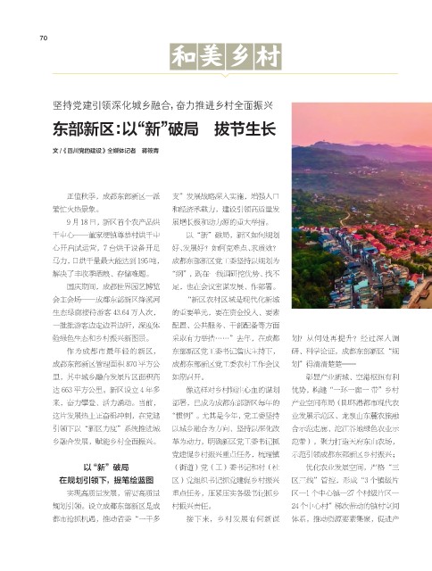 乡融合发展,赋能乡村全面振兴。 革为动力,明确新区党工委书记抓 范带),聚力打造天府东山农场,