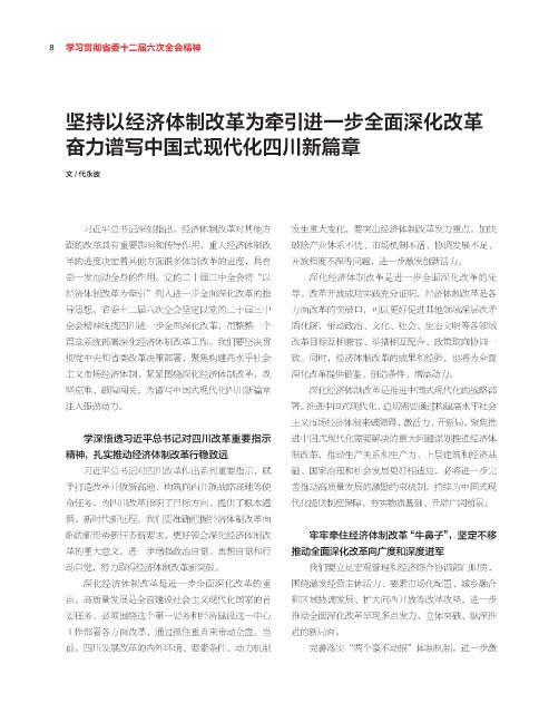 坚克难、破障闯关,为谱写中国式现代化四川新篇章 深化经济体制改革是推进中国式现代化的战略部