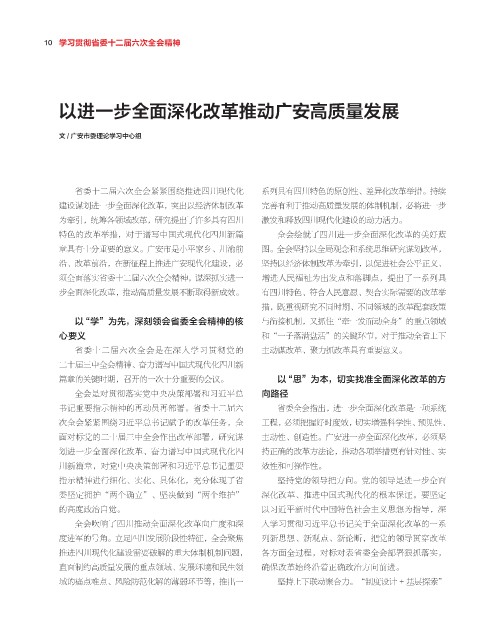 度进军的号角。立足四川发展阶段性特征,全会聚焦 列新思想、新观点、新论断,把党的领导贯穿改革