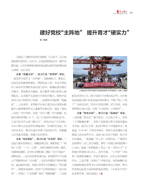为根本、党性教育为基础、能力提升为牵引的核心教 泸县组织中青年干部到泸州港现场教学点位开展教学。供图 / 泸县组