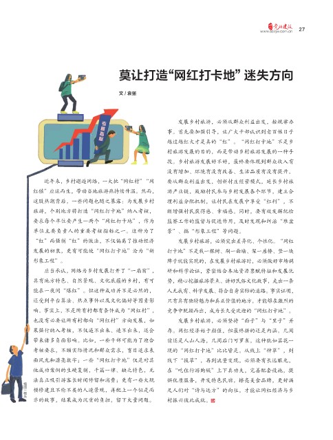 发展的初衷,更有可能使“网红打卡地”沦为“新 打卡地”不是栽一棵树、刷一面墙、架一座桥、竖一块