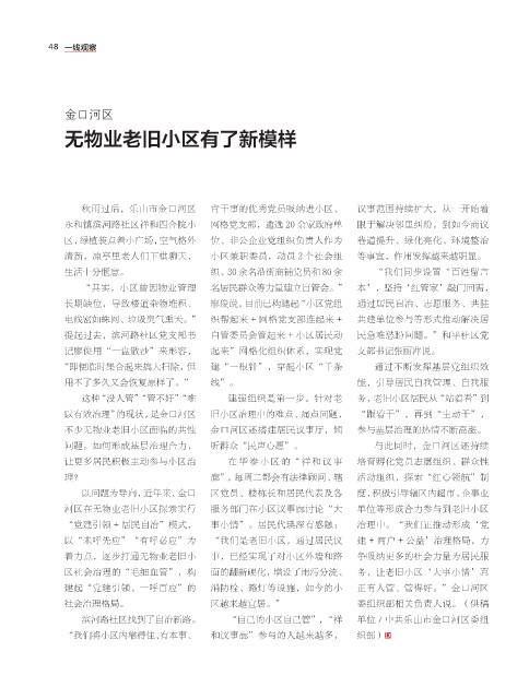 不少无物业老旧小区面临的共性 金口河区还搭建居民议事厅,倾 参与基层治理的热情不断高涨。