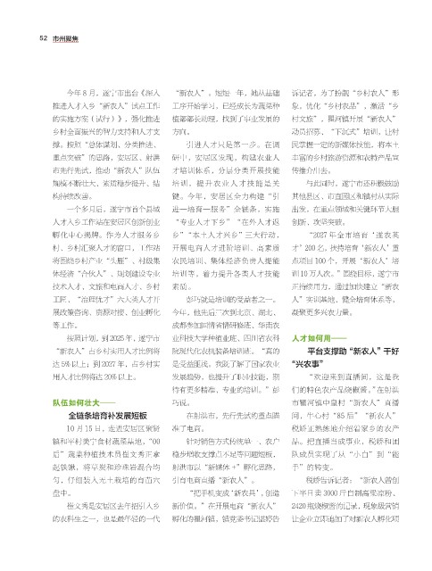 今年 8 月,遂宁市出台《深入 “新农人”。短短一年,她从基础 诉记者,为了扮靓“乡村农人”形