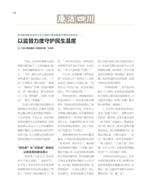 个生动事例。今年以来,全省各级 委跟踪督办下,相关部门整合资金 听民声、察民情,在筑牢基层监督