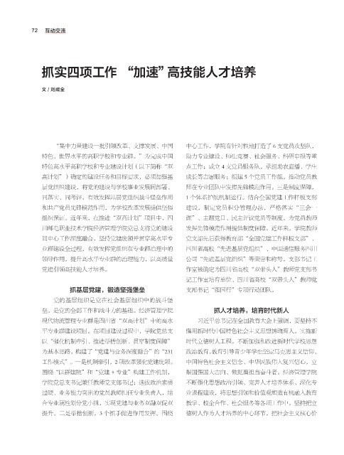 党建引领高技能人才培养。 作室被确定为四川省高校“双带头人”教师党支部书