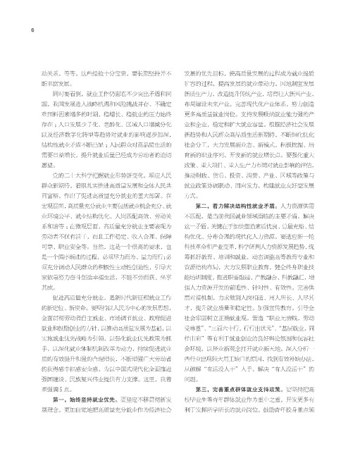 动关系,等等。这些经验十分宝贵,要长期坚持并不 发展的优先目标,使高质量发展的过程成为就业提质
