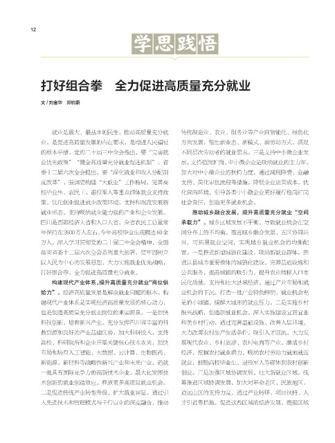 也是创造高质量充分就业岗位的重要源泉。一是加快 振兴战略,创造新就业机会。深入实施建设宜居宜业