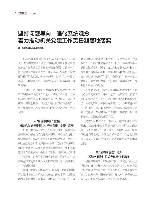 共产党党组工作条例》第四十条规定,推动机关工委 系统全面推进机关党建责任制落实