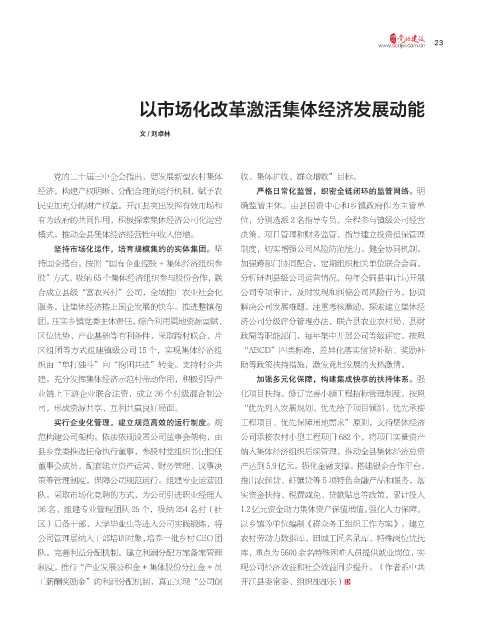 建。充分发挥集体经济示范村带动作用,积极引导产 加强多元化保障,构建集成快享的扶持体系。强