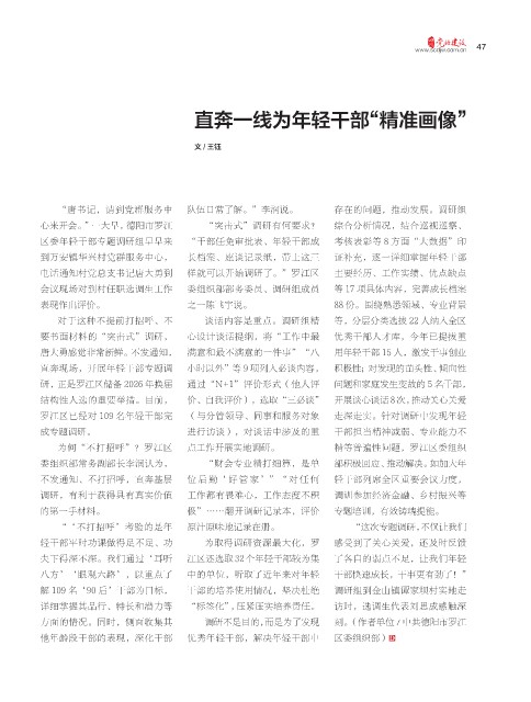 罗江区已经对 109 名年轻干部完 (与分管领导、同事和服务对象 走深走实。针对调研中发现年轻