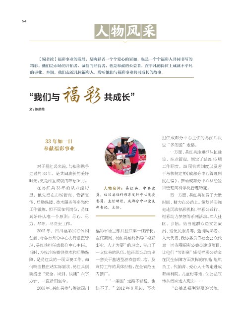 里,他先后在市场管理、营销宣 员,四川省福利彩票发行中心党委 另一方面,易红兵花费了大量