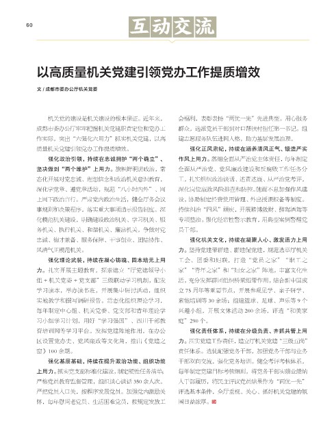 文 / 成都市委办公厅机关党委