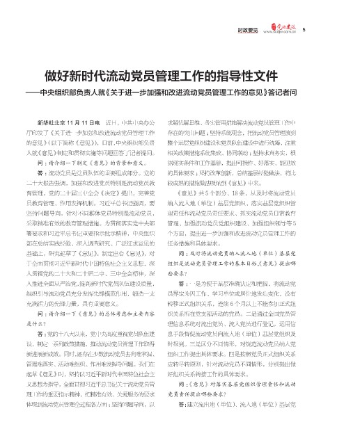 义思想为指导,全面贯彻习近平总书记关于流动党员管 问: 《意见》对落实基层党组织管理责任和流动