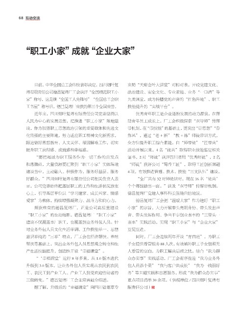 和落脚点,大量资源要汇聚到‘职工小家’实体阵地 “师徒”获评公司“蜀香工匠”,取得工匠创新课题