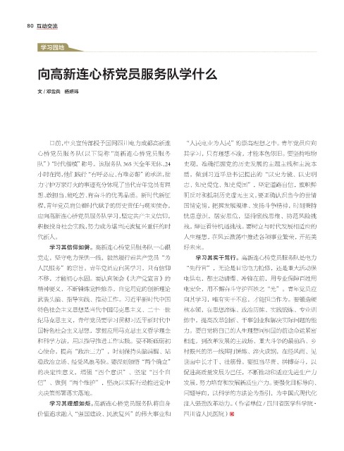 学习其理想如炬。 高新连心桥党员服务队将自身 注入强劲改革动力。(作者单位 / 四川省医学科学院·