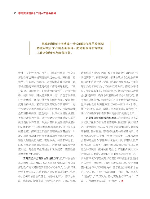推进四川统计领域进一步全面深化改革必须坚