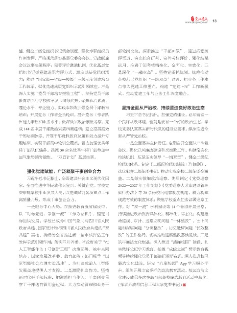 穿于干部选育管用全过程,大力推动管理和业务干 ( 作者系成都信息工程大学党委书记 )