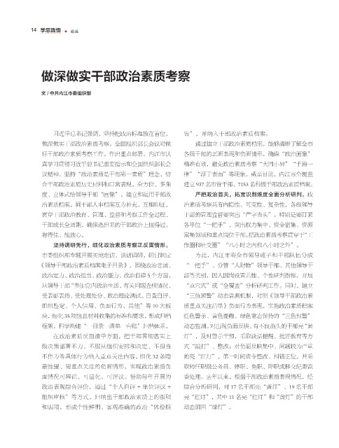 好干部政治素质考察工作,作出重点部署。内江市认 各级干部的正面表现和负面情形,确保“政治画像”