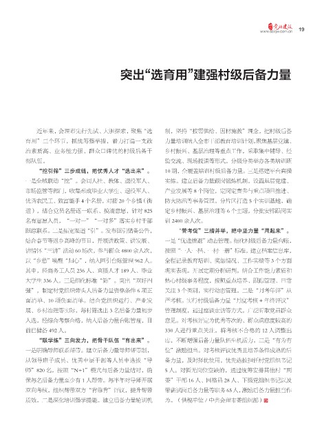 从领导班子成员、优秀中层干部等人员中选拔“导 备力量,及时择优使用,优先选拔担任村党组织书记