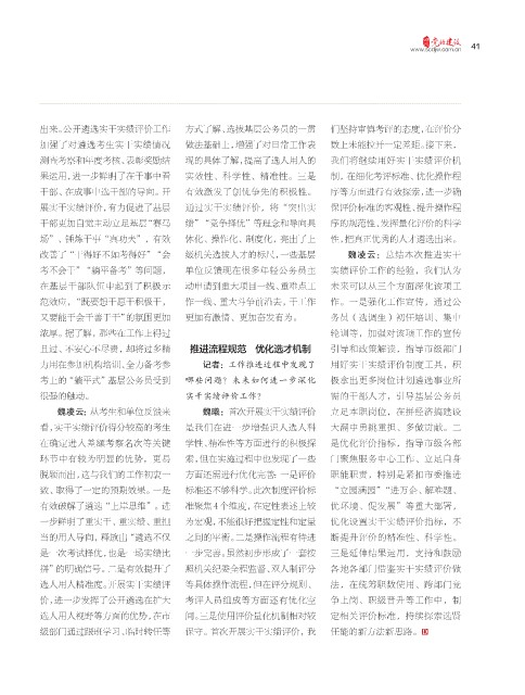 价,进一步发挥了公开遴选在扩大 考评人员组成等方面还有优化空 争上岗、职级晋升等工作中,制