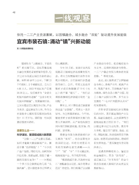 于宜宾市南溪主城区东部的裴石 会,将大力发展镇域经济作为实 思路。”邓珺文说。