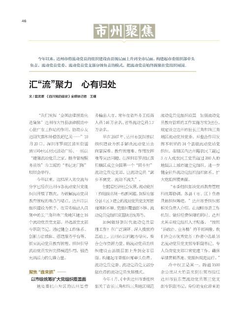 以市级统筹扩大党组织覆盖面 今年 4 月,《中共达州市委组织 达州市驻东莞流动党员第三党支