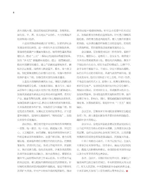 心,又正视困难、保持清醒。要全面贯彻明年经济工 项部署,全面完成经济社会发展目标任务,以高质量