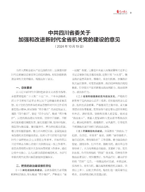 进全省机关党的建设,现提出如下意见。 全政治监督具体化、精准化、常态化机制。加强政治