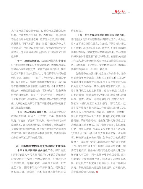 (十三)做好新时代机关统战工作。部门党组 情况专题汇报,有条件的部门可推行机关党建工作