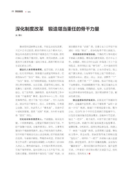 实施干部传帮带,定向培养 2 至 3 名年轻干部。岗 实效。(作者系中共资阳市雁江区委副书记、组织