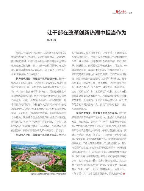 建设制度机制。广安市岳池县始终把干部作为全面深 斗争、重大任务一线考察识别改革型干部,把敢想敢