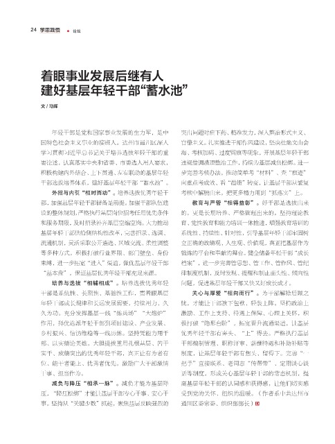部,加强基层年轻干部储备是前提。加强干部队伍建 教育与严管“相得益彰”。好干部是选拔出来