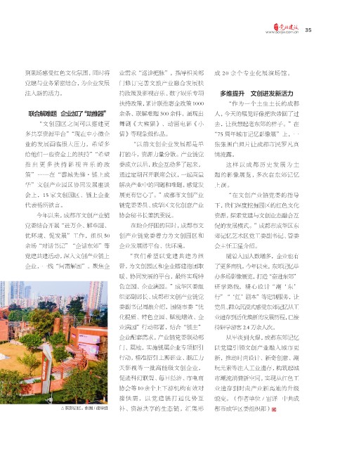 党委结合开展“进万企、解难题、 在助企纾困的同时,成都市文 促的发展模式。”成都市成华区东
