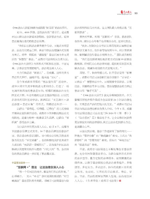 治游园 + 普法市集”的形式,传播法治知识…… 台,实现普法产品的智能人机交互。”成都市司法局