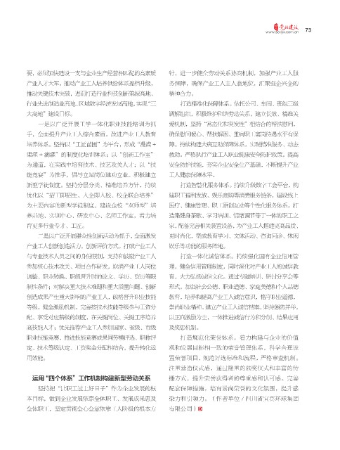 要,必须加快建设一支与企业生产经营相匹配的高素质 针,进一步健全劳动关系协商机制,加强产业工人服
