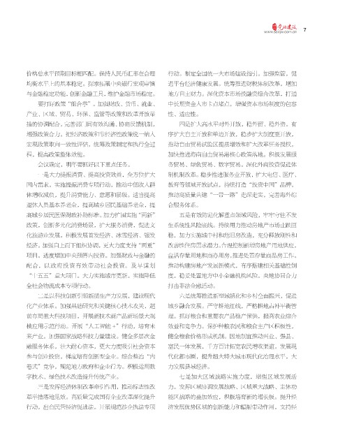 价格总水平预期目标相匹配。保持人民币汇率在合理 行动。制定全国统一大市场建设指引。加强监管,促