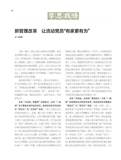 的温暖和力量,确保流动党员“流动不流失、有家 专职副书记到流动党员党组织工作。