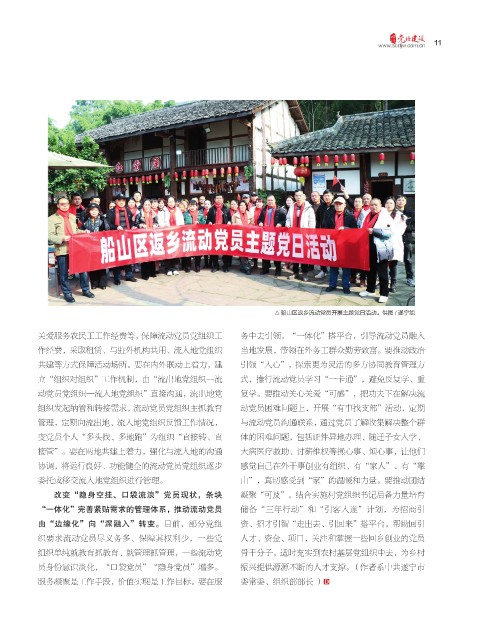 关爱服务农民工工作经费等,保障流动党员党组织工 务中去引领,“一体化”搭平台,引导流动党员融入