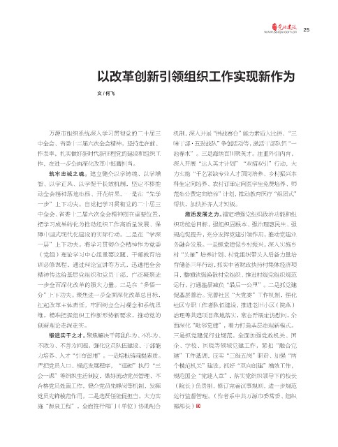 以改革创新引领组织工作实现新作为