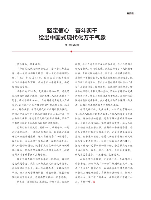 辉。”2024 年 12 月 31 日,国家主席习近平发表 在新的一年接续奋斗,巴蜀儿女理应以昂扬之姿,做