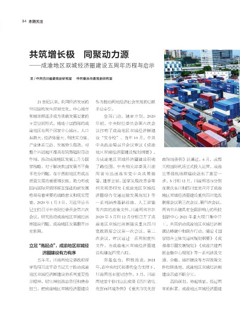 立足“高起点”,成渝地区双城经 文件,为成渝地区双城经济圈建 都都市圈发展规划》《成渝共建西
