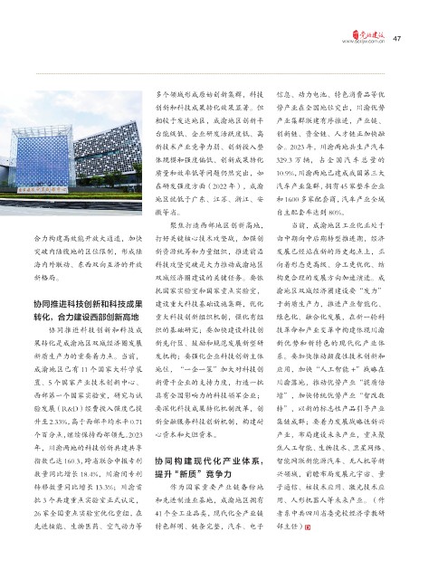 果转化是成渝地区双城经济圈发展 新先行区、鼓励和规范发展新型研 新优势和新特色的现代化产业体