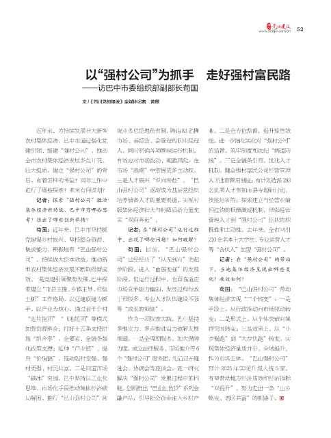 苟国:近年来,巴中市坚持抓 记者: 在“强村公司”运行过程 极性和主动性。去年来,全市回引