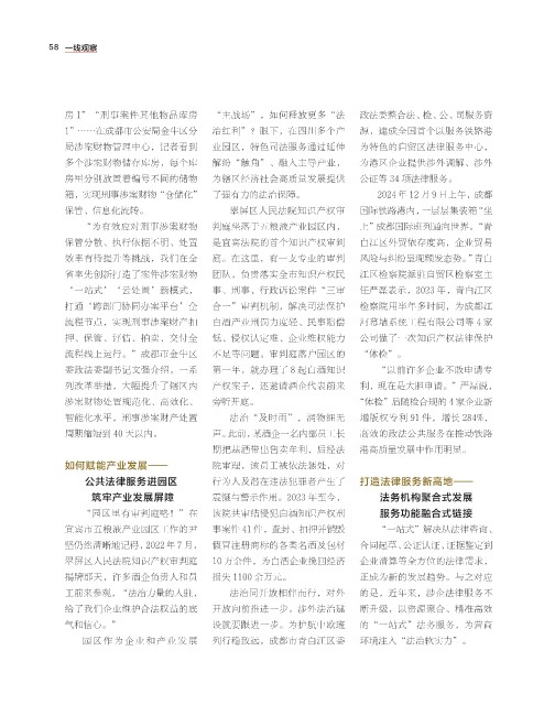 打通‘跨部门协同办案平台’全 合一”审判机制,解决司法保护 检察院用半年多时间,为成都江