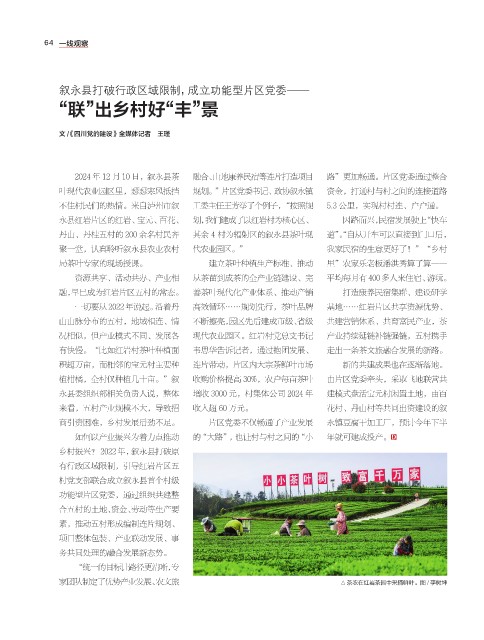 2024 年 12 月 10 日,叙永县茶 融合、山地康养民宿等连片打造项目 路”更加畅通。片区党委通过整合