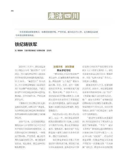 检监察铁军。 员带头原原本本、逐条逐句学习修 练”的机会,更是带动身边的纪检