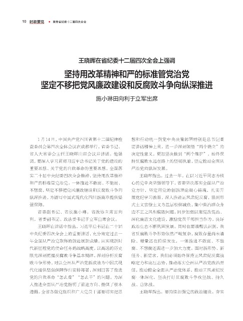 实二十届中央纪委四次全会精神,坚持用改革精神 王晓晖指出,过去一年,在以习近平同志为核