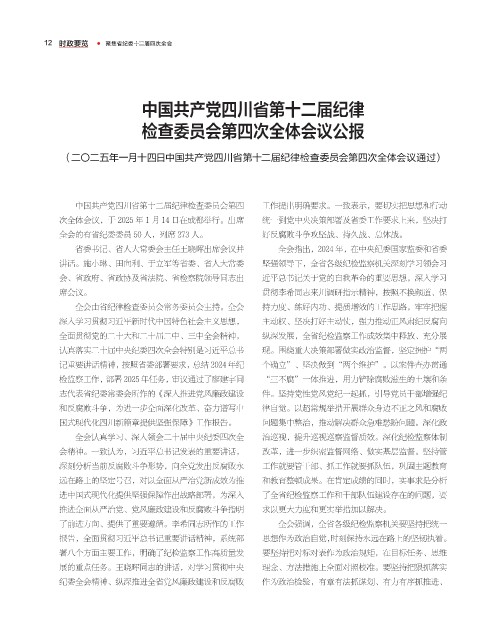 (二〇二五年一月十四日中国共产党四川省第十二届纪律检查委员会第四次全体会议通过)