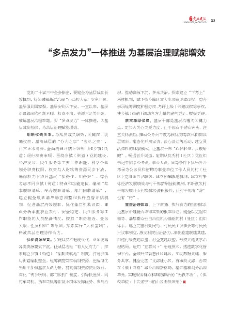 治理都面临机制不顺、权责不清、资源不足等问题。 使乡镇(街道)调动各方力量的底气更足、腰板更硬。